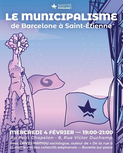🐝 Mercredi 4 février de 19h à 21h : Soirée autour du municipalisme (et de David Hamou). Lieu : Le Petit Chapelon, 8 rue Victor Duchamp à Saint-Étienne.