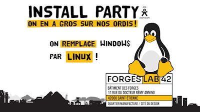 🐝 Jeudi 19 Février à 16h30 : « Install Party » (Linux sur votre ordi). Lieu : ForgesLab42, 11 rue du Dr Rémy Annino à St-Etienne