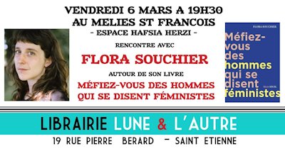 🐝 Vendredi 6 Mars à 19h30 : Rencontre avec Flora Souchier autour de son nouveau livre « Méfiez-vous des hommes qui se disent féministes ». Lieu : Nouvel espace Hafsia Herzi (Cinéma Le Meliès St François) à Saint-Étienne.