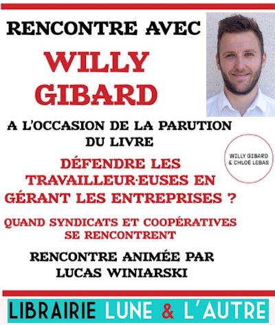 🐝 Jeudi 19 mars à 19h : Rencontre avec Willy Gibard a l’occasion de la parution du livre « défendre les travailleur-euses en gérant les entreprises ? ». Rencontre animée par Lucas Winiarski. Lieu : Librairie Lune & L'autre 19 rue Pierre Bérard à Saint-Étienne.