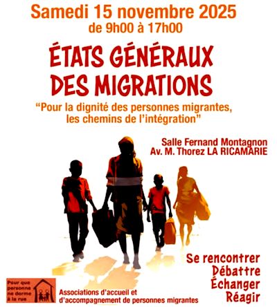🐝 Samedi 15 novembre de 9h à 17h : Table ronde « Les Etats Généraux des Migrations ». Lieu : Salle Montagnon, Av Maurice Thorez à La Ricamarie.